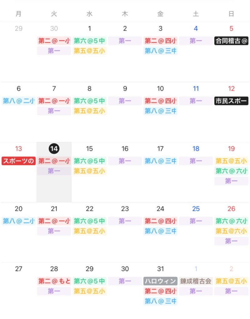 10月の稽古日
