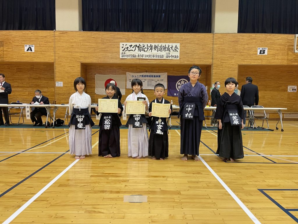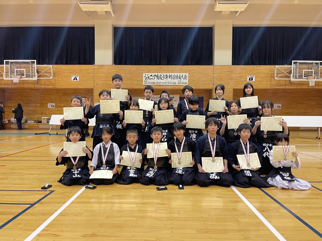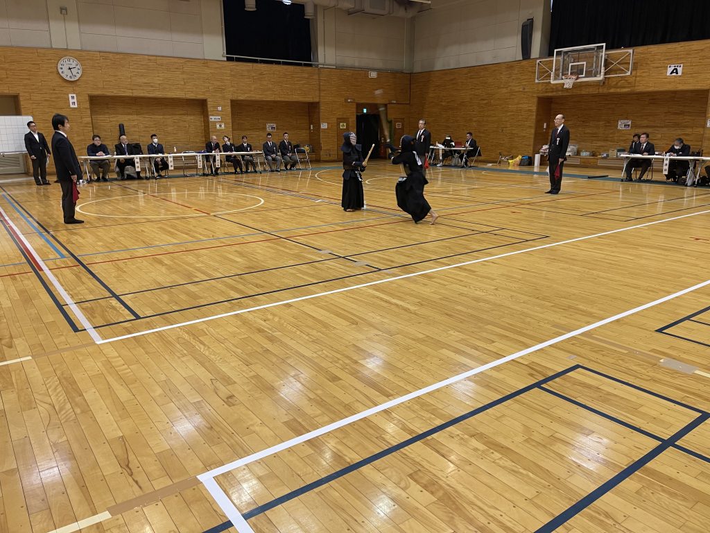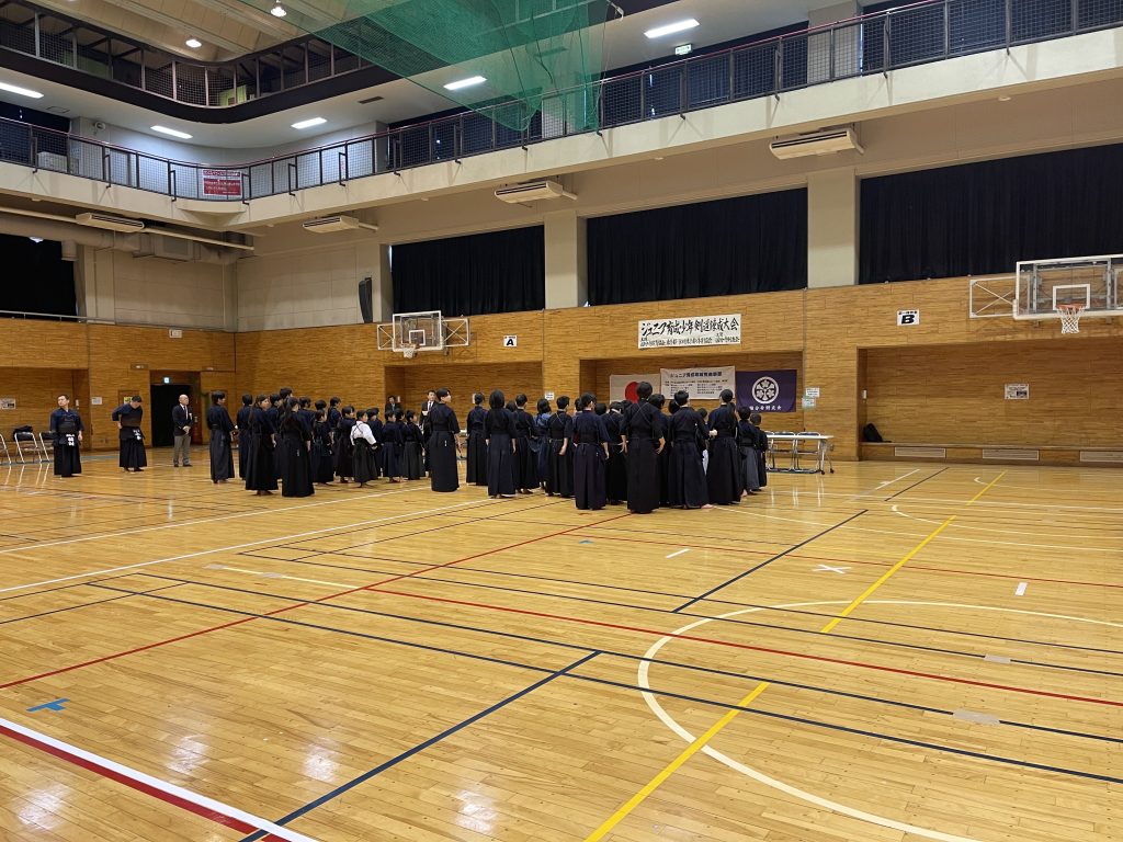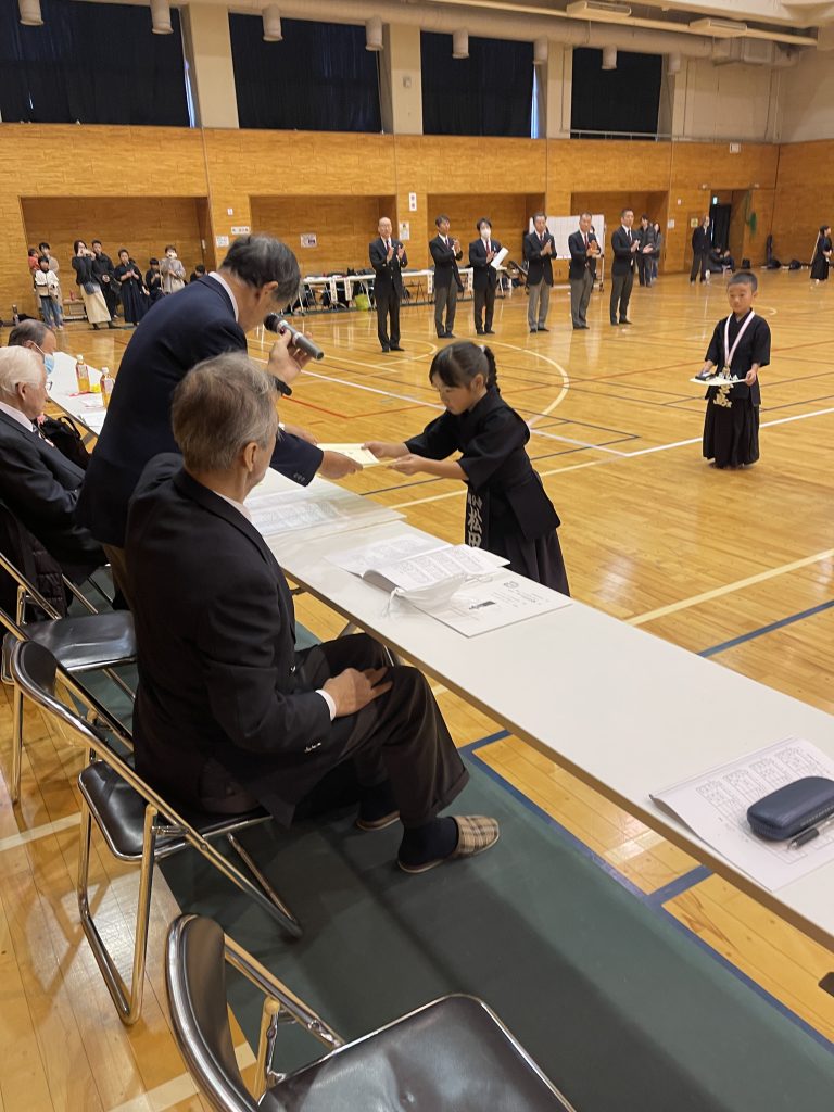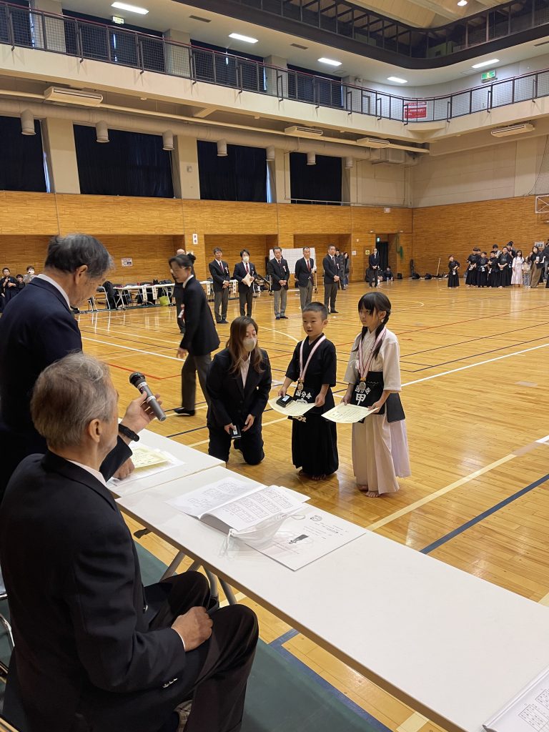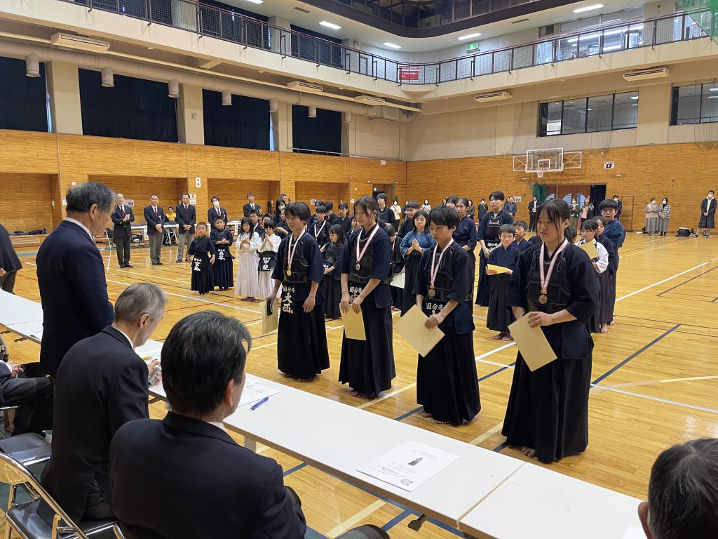 木刀による剣道基本稽古法披露、基本の部試技披露ののち、年齢別にリーグ戦・トーナメント戦を行いました。各試合において基本打ちの判定を行いそれを一本とする基本の鍛錬を特に重視する試合形式で行いました。